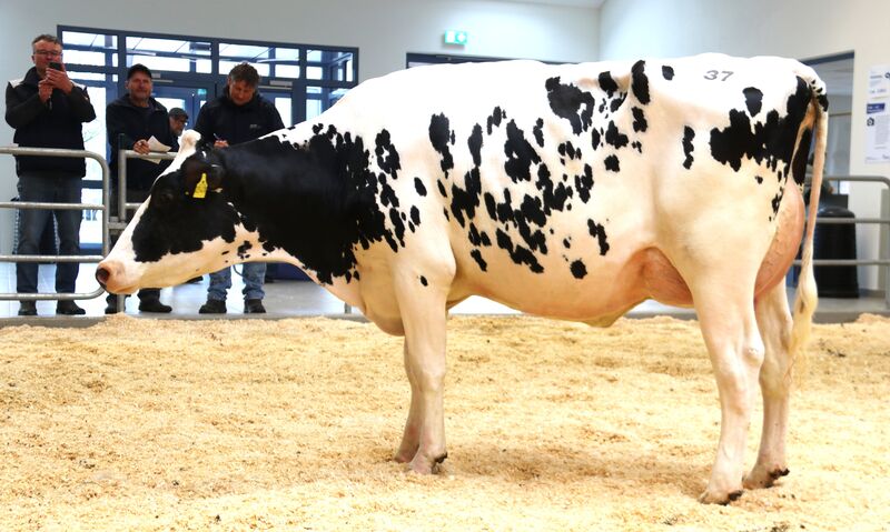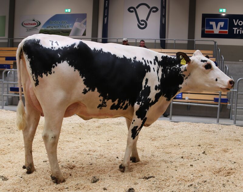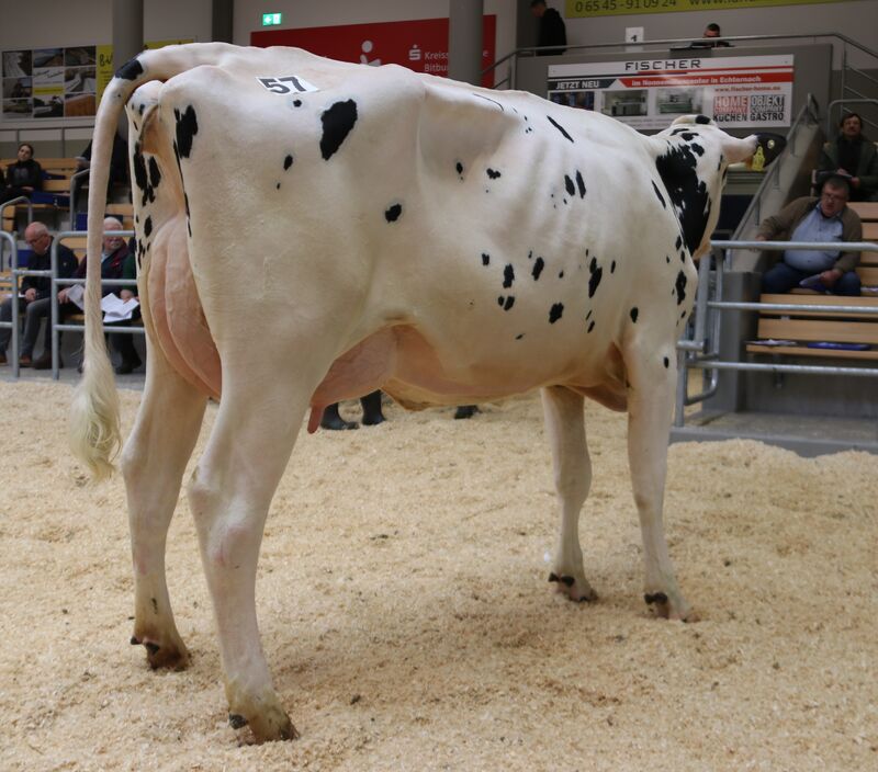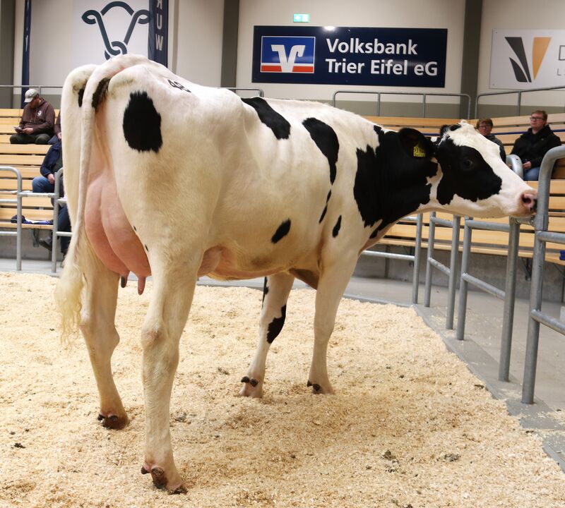 Wer viel Milch, lange, problemlos und effizient melken will, darf bei der Remontierung nicht sparen. Und wer dann noch an schöne Kühe Freude hat erst recht nicht. So wechseln alle vier folgende Zuchtrinder in einen Stall nach Nordrhein-Westfalen. SSM Erna ist eine kompakte, starke Färse von CONVERSE, die besonders mit einem bestem Euter zu überzeugen wusste. Mit 42 kg Tagesgemelk erhielt Stefan Struben aus Dahlem 3.900 €. Die Zens GbR aus Musweiler präsentierten eine ebenbürtige, hellbunt gescheckte Spirit-Red die mit 43 kg zum selben Preis zugeschlagen wurde. Ein weiteres Struben-Mädel, dieses Mal von Reddit abstammend und eine FRESH-Färse, ZS Imola, von Zens brachten ihren Züchtern 3.700 €. Eine außergewöhnlich starke Kollektion bester Holsteinfärsen, Glückwunsch dem Käufer.