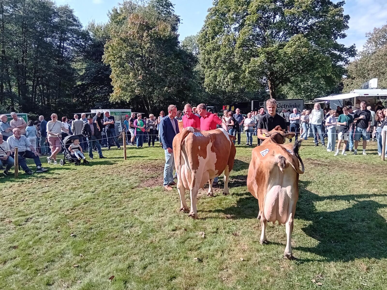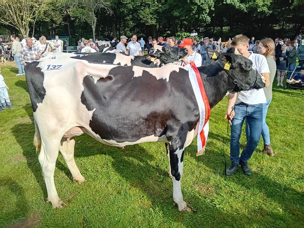 Bei idealem Tierschauwetter hatten die beiden Preisrichter die ersten beiden Klassen der einkalbigen Färsen zu richten. Die erste Klasse gewann die Kat.-Nr. 145 Crushabull-Tochter Kitty von Markus Lütticke aus Drolshagen-Brachtpe, die sich gekonnt typstark und auf hervorragenden Fundament präsentieren konnte, vor der körperstarken und sehr harmonischen Kat.-Nr. 146 Alligator-Tochter Stall-Nr. 38 von Matthias Zielenbach aus Wenden-Hillmicke, in der zweiten Klasse siegte mit einem beeindruckt festen und drüsigem Euter die Kat.-Nr. 137 Fallon, eine Victor-Tochter von Georg Geuecke aus Attendorn-St.Claas vor der auf dem zweiten Platz rangierten Kat.-Nr. 135-Garnier Tochter Galaxy, eine rotbunte und fast fehlerfreie junge Kuh aus der Zuchtstätte Markus Lütticke. Zur Siegerkuh Jung kürte das Duo Albers/Nölker die euterstarke Stall-Nr. 137 von Georg Geuecke, Reservesieger die Kuh Kitty von Markus Lütticke.