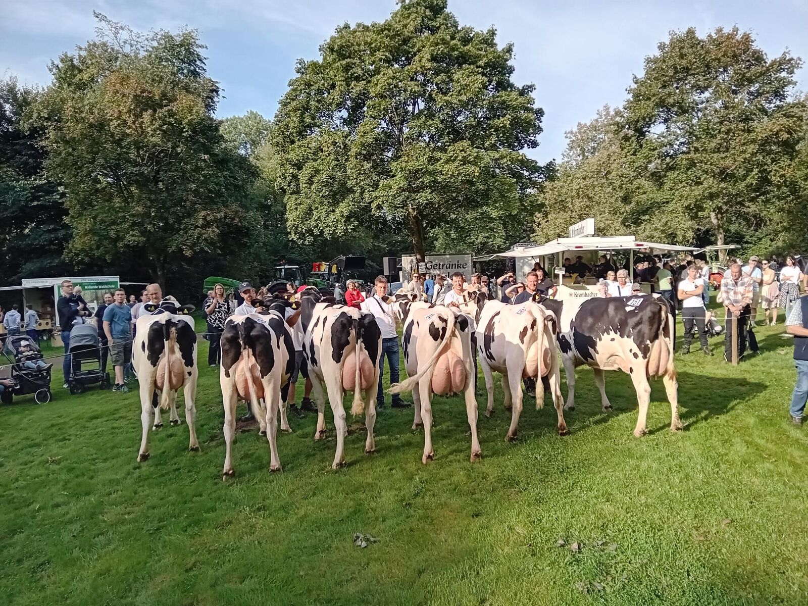 Bei sehr frischen 12°C fand am Samstag, den 20. September die Kreistierschau des Kreis Olpe im Stadtpark „Lohmühle“ in Drolshagen statt. Insgesamt stellten 11 Betriebe insgesamt 33 Holsteins, 2 Fleckvieh, eine Jersey Kuh und vier Tiere der Rasse Limousin ( 2 Deckbullen und 2 mal Mutterkuh mit Kalb) sowie 15 Kälber im Jungzüchter Wettbewerb aus. Das Preisrichteramt für die Kühe übernahmen Carina Nölker aus Osnabrück-Melle und Hendrik Albers aus Wadersloh. Als Ringsprecher agierte zum ersten Mal in Drolshagen der erfahrene Hubertus Droste.