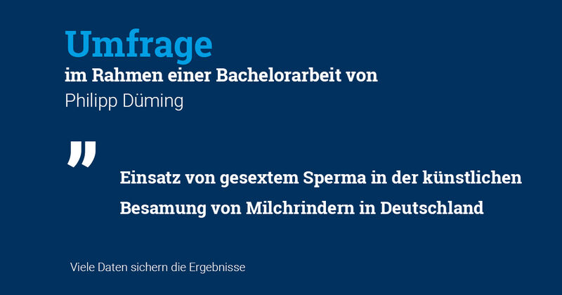 Mit dieser Umfrage sollen im Rahmen einer Bachelorarbeit Daten zum Einsatz von gesextem Sperma in der Milchrinderbesamung in Deutschland erhoben werden. Die Teilnahme an der Umfrage ist freiwillig. Es wäre hilfreich, wenn Sie einige Fruchtbarkeits- und Geburtsverlaufskennzahlen zur Hand hätten, dies ist jedoch nicht zwingend erforderlich. Auch wenn Sie kein gesextes Sperma einsetzen, würde sich Herr Düming über Ihre Teilnahme freuen. Die Bearbeitungsdauer der Umfrage beträgt 5-10 Minuten. Bei Fragen können Sie sich per E-Mail an philipp.duemig@student.hu-berlin.de wenden. Die Umfrage läuft bis zum 01.07.2021.