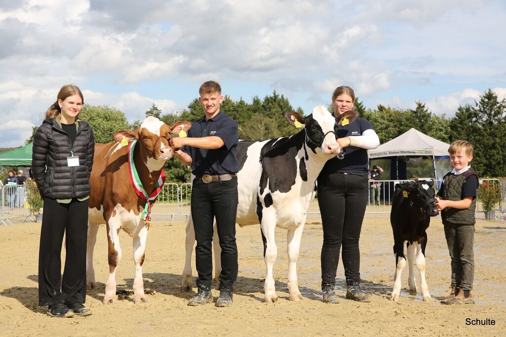 Im Anschluss traten die Jungzüchter im Vorführwettbewerb gegeneinander an. Bei den Bambini überzeugte der erst fünfjährige Karl Hermann Siemann mit dem Kalb Geraldine der Krey GbR aus Leichlingen durch eine souveräne Vorführleistung und kluge Antworten auf die Fragen von Preisrichterin Laura Köster. In der folgenden Altersklasse sicherte sich Enna Klein mit THL Rachel der Dierdorf GbR den Sieg. Doch beim abschließenden Wettbewerb um den Gesamtsieg setzte sich Simon Mickenhagen durch: Mit einer herausragenden Vorführleistung und der Präsentation der rotbunten Alpha-Tochter AHZ Guiliana ließ er der Preisrichterin keine andere Wahl, als ihn mit dem Siegertitel auszuzeichnen.