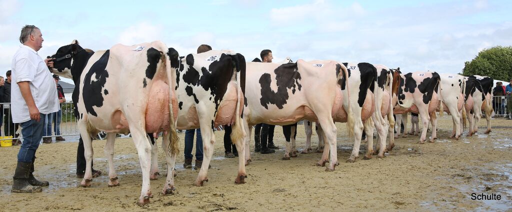 Gastgeber Bernd Lohmann setzte sich in dieser Kategorie souverän durch. Mit vier großrahmigen, harmonischen Kühen, die durch beste Fundamente sowie fest und hoch angesetzte, optimal melkbare Euter überzeugten, ließ er der Konkurrenz keine Chance und gewann den Siegerpreis. Der Reservesieg ging an die Lüpschen GbR aus Lohmar, deren lackschwarze Sammlung ebenfalls ein exzellentes Exterieur zeigte und keine Wünsche offenließ. Auf den weiteren Plätzen folgten Marco Mickenhagen aus Wipperfürth und Christoph Hamacher aus Kürten, die sich in ihren Klassen jeweils Rang zwei sicherten.