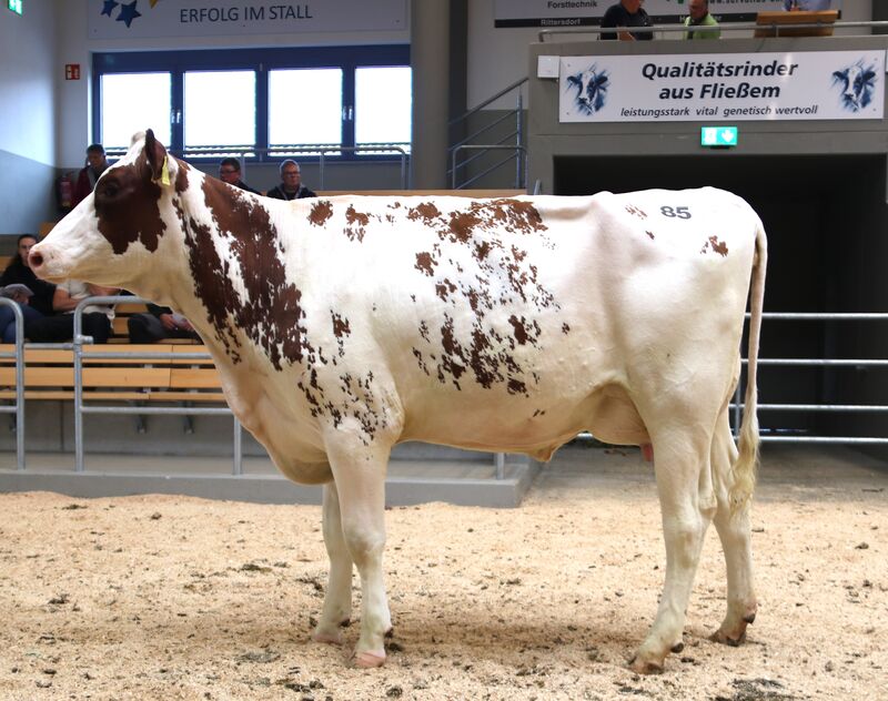 Ganz schnell war klar, abgekalbte Zuchtrinder sind sehr gefragt, obwohl es leicht gedämpfte Prognosen bei den Milchpreisen gibt. Nach Abschluss der Maisernte gilt die volle Aufmerksamkeit wieder der Kuhherde und da kam das gute Angebot in Fließem genau passend. Die drei Zweitkalbskühe überzeugten alle mit hohen Einsatzleistungen. Die überzeugendste Kuh war die Sobilo-Tochter Lea der Lamberty-Borsch Agrar GbR aus Pantenburg, die für 2.800 € nach Luxemburg reist. Bei den Holsteinrindern war es ein Holsteinzüchter aus den Niederlanden der seine Herde mit den Besten aus Fließem ergänzt hat und sehr qualitätsbewusst bot. Doch die Preisspitze bleibt in der Eifel: SSM Ninette ist eine Converse-Tochter, die von Stefan Struben aus Dahlem im Ring begleitet wurde. Ein Klasse-Rind mit sehr viel Ausstrahlung die für 4.300 € zugeschlagen wurde. Mit 4.100 € folgte eine absolute Leistungsfärse aus der Zucht Meuteshof eGbR aus Rommersheim. Diese William hat ein Tagesgemelk von 55 kg! Den Zuschlag erhielt ein niederländischer Milchviehbetrieb. Bei 3.800 € fiel der Hammer für Katalognummer 40, eine Tochter von Besan aus der Zucht von Frank Königs aus Stadtkyll. Sie wusste in allen Merkmalen zu gefallen und war ihren Preis wert und wechselt über die Grenze nach Luxemburg. Weiter 4 Holsteinfärsen ersteigerte ein Betrieb aus den Niederlanden, alle für 3.800 € im Zuschlag. Mit dem Präfix SSM (Struben) sind es eine Converse und eine Reddit Tochter und das PM-Präfix (Meutes) haben eine Ginstream und eine Aptitude Tochter. Alle genannten Holsteins haben hohe Einsatzleistungen und passen auf Grund ihrer sehr korrekten Eutern in jeden Betrieb. Viele junge, frisch abgekalbten Färsen erlösten am Ende der Versteigerung sehr gute Preise. Eine gelungene Versteigerung, die zeigt, dass ein entsprechender großer Auftrieb mehr Kunden nach Fließem zieht.