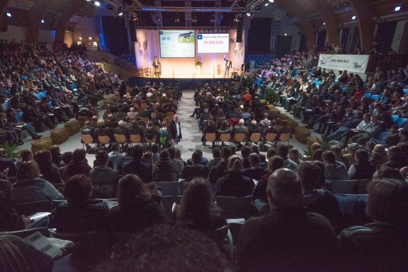 Die RUW-Jungzüchter hatten mit vielen spannenden Richtentscheidungen beim Vorführwettbewerb bereits für tolle Stimmung gesorgt und diese heizte sich im Verlauf der Auktion weiter und weiter auf. Auktionator Christoph Niehues-Pröbsting und Pedigreeleser Dominik Weber, der an diesem Abend seine Premierenvorstellung gab, nahmen die Begeisterung des Publikums in der nahezu voll besetzten Halle hervorragend auf und führten auf erfrischend lockere Art und Weise durch den Abend. Und das mit Erfolg, denn am Ende der Auktion resultierte ein Durchschnittspreis von knapp 6.000 € für 42 verkaufte Tiere. Die Käufer kamen aus allen Regionen Deutschlands, aus Spanien, Italien, den Niederlanden, Belgien und Großbritannien. Ein wahrlich gelungener Auftakt in das Jahr 2019 und ganz sicher das erste Highlight des Jahres.