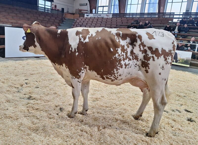 Die beiden rotbunten Vision PP-Söhne präsentierten sich bestens entwickelt auf sehr guten Fundamenten und mit hohen Leistungen im Pedigree. Der Topseller mit einem Steigpreis von 4.500 € wird zukünftig in Österreich decken. Sein Halbbruder wechselte für 3.900 € in die Städteregion Aachen. Wieder einmal zeigte sich, dass auf dem Bullenmarkt neben einer guten Qualität natürliche Hornlosigkeit ein durchschlagendes Kaufargument darstellt.