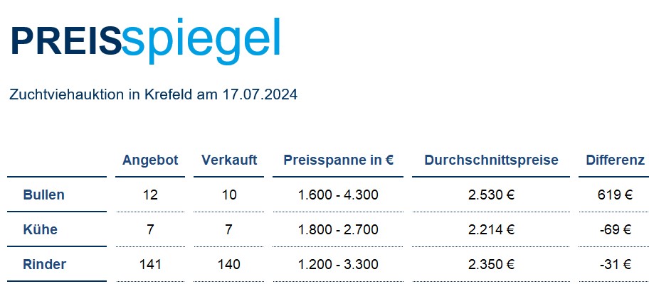 Die Juli Zuchtviehauktion in Krefeld zeigte es wieder einmal: inländische und ausländische Käufer suchen leistungsbereite Färsen mit korrekten Fundamenten und Eutern. Neben diesen beiden Merkmalen muss eine passende Milchleistung und eine gute Eutergesundheit für eine erfolgreiche Vermarktung vorliegen. Das diese Mischung zu einem hervorragenden Auktionsverlauf führt, zeigte sich auch auf der 1203. Zuchtviehauktion in Krefeld. Besonders hervorzuheben war in diesem Monat die Anzahl der Tiere mit hohen Leistungen und nahezu sensationell niedriger Zellzahlen. Am Ende der Auktion wurden Spitzenpreise von über 2.600 € von über 20 % des Färsenkontigents erreicht. Sowohl Kunden aus Belgien, Luxemburg und Italien als auch zahlreiche Kunden aus dem Inland erkannten das Potential der Krefelder Färsen und waren bereit in diesem Preissegment zu kaufen. Der Durchschnittspreis pendelte sich in diesem Monat bei hervorragenden 2.350 € ein.