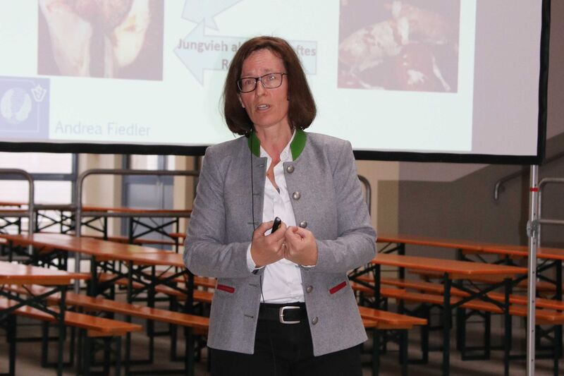 Frau Dr. Andrea Fiedler von der Praxisgemeinschaft für Klauengesundheit, München, ist bundesweit die bekannte Kapazität zum Thema Klauengesundheit. Bei ihrem Vortrag „Dermatitis digitalis – 5-Punkte-Plan zur Kontrolle der Mortellaroschen Krankheit“ zeigte sie dem hochinteressierten Auditorium wie man durch konsequentes Handeln der Krankheit Einhalt gebieten kann. Die 5 Punkte sind: -Externe Biosicherheit, -Interne Biosicherheit, -Frühe Erkennung, Dokumentation und Einzeltierbehandlung, -Verminderung der Bakterienmenge auf den Klauen, -Ziele festlegen und den Erfolg überwachen. Bei ihrem lebhaften Vortrag nahm sie die Zuhörer mit, suchte das Gespräch und konnte im Anschluss sehr viele Fragen beantworten. In ihrem Vortrag referierte sie auch zum neuen Zuchtwert DD Control / DD Premium.