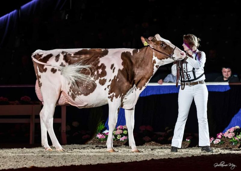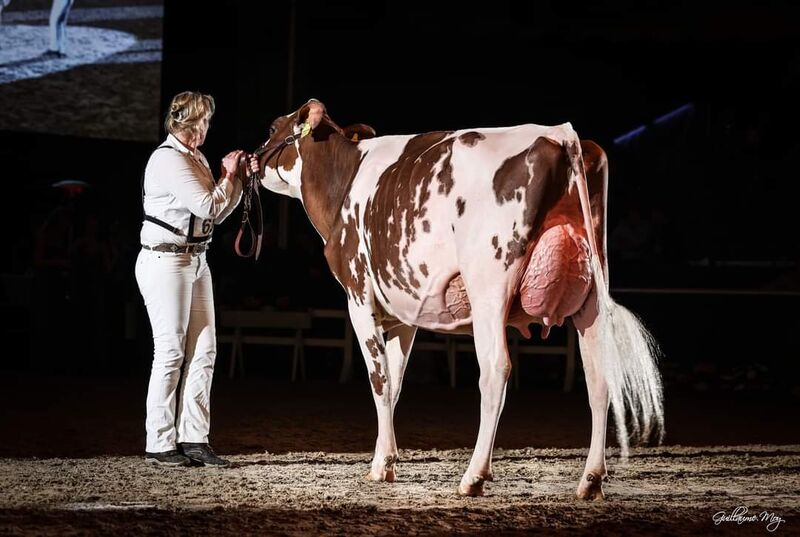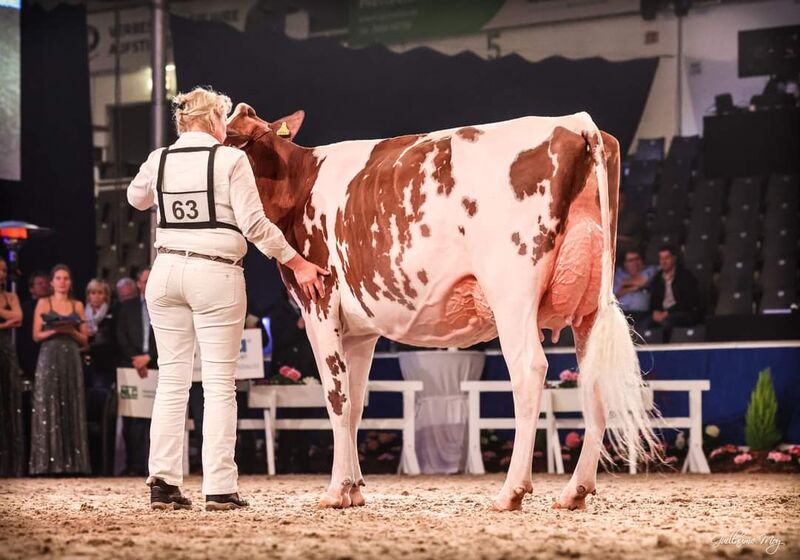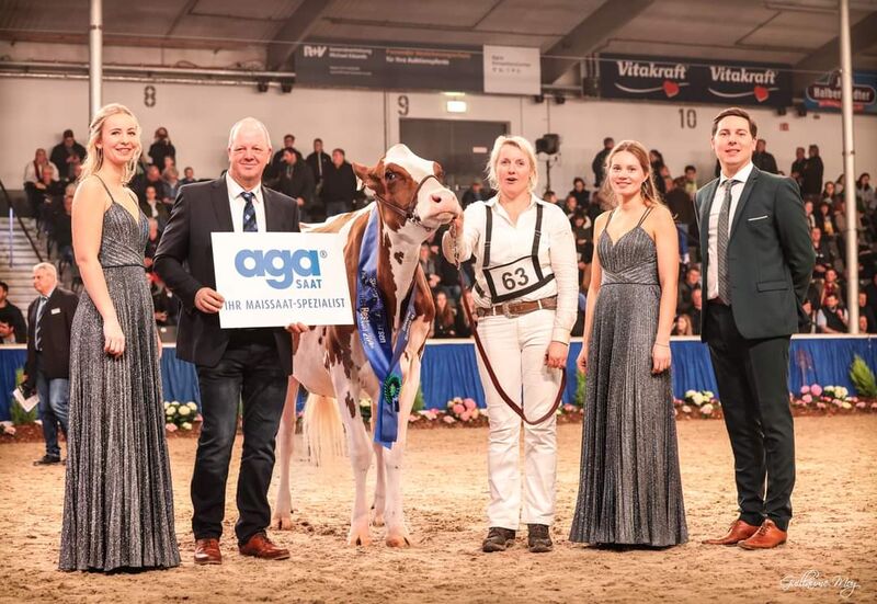 Sieben Wochen später betrat Sie nun für ihren neuen Heimatstall den Ring bei der Schau der Besten in Verden und setzte sich gegen erstklassige schwarz- und rotbunte Konkurrenz durch. Sie holte sich die begehrte Schärpe als schönste Färse der Schau.