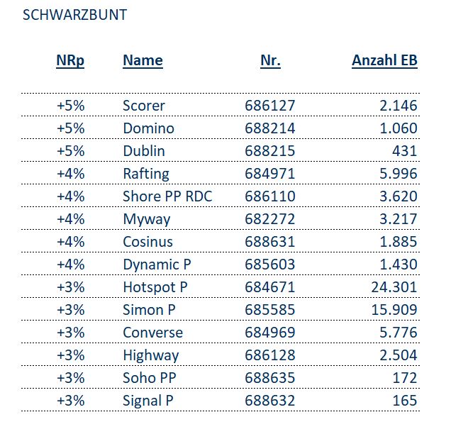 Im Rahmen der Zuchtwertschätzung im April 2022 können sich erneut eine ganze Reihe an RUW-Bullen mit hervorrganeden Befruchtungszahlen behaupten. Führende top Befruchter, die mehr als 1.000 Erstbesamungen aufweisen können, sind SCORER, DOMINO, RAFTING, SHORE PP RDC und MYWAY. Bei den rotbunten Bullen sind MONEY P und SOLITAIR P die Spitzenreiter.
