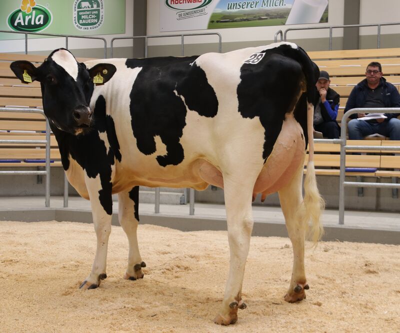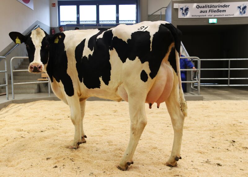 Vorweg: Von den zwei angebotenen Bullen konnte nur einer zugeschlagen werde. Rasant ist ein RealSyn-Sohn aus einer Murphy-Mutter, die in ihrer ersten Laktation bereits 15.000 kg Milch geleistet hat. Der Bulle hat einen genomischen Zuchtwert von RZG 150. Verkäufer ist Schäfer, Thomas aus Steiningen. Er wird im Kreis Heinsberg zum Deckeinsatz kommen.